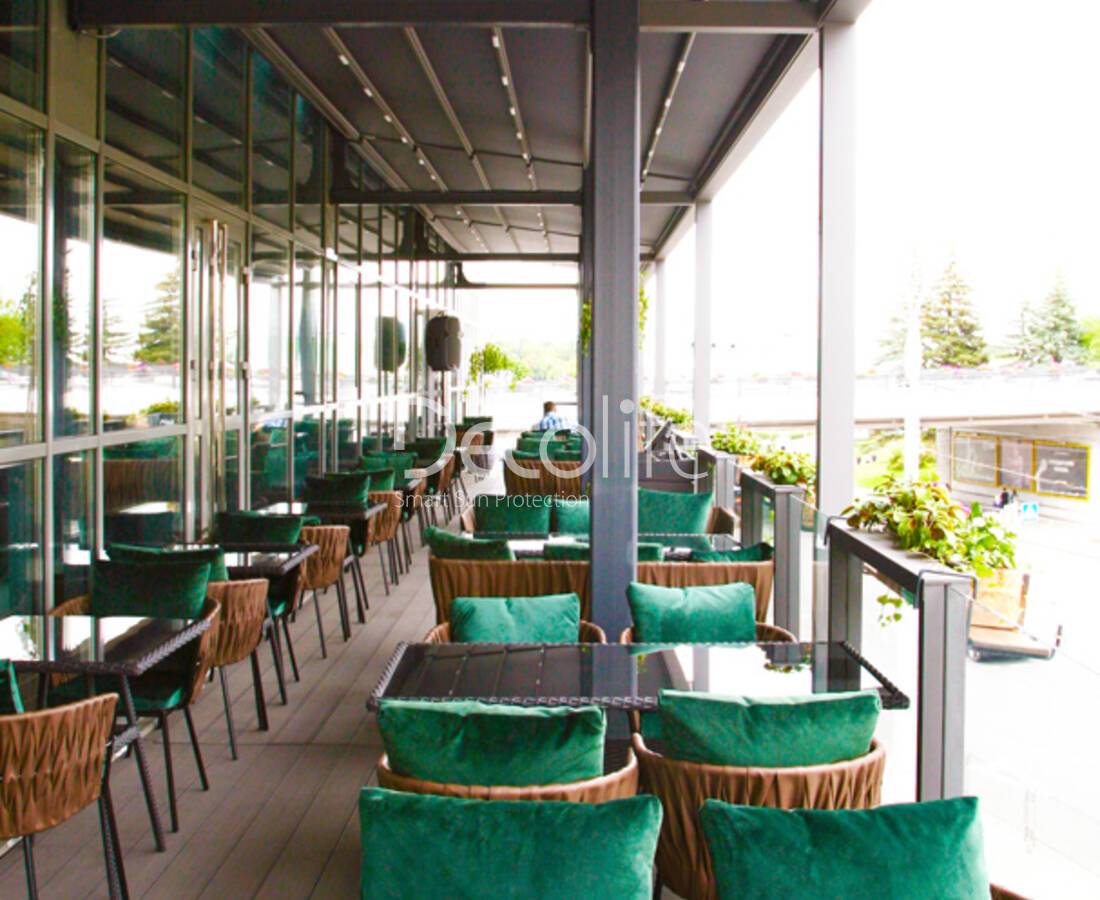 Пергола Decolife Bioclimatic B400 + Раздвижное остекление S100 - г. Москва, ресторан "Крабы Кутабы", Депо