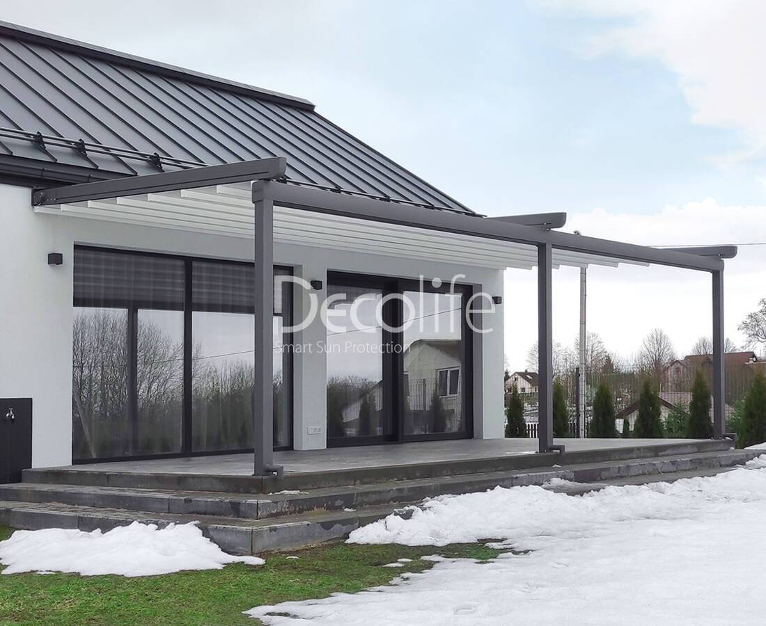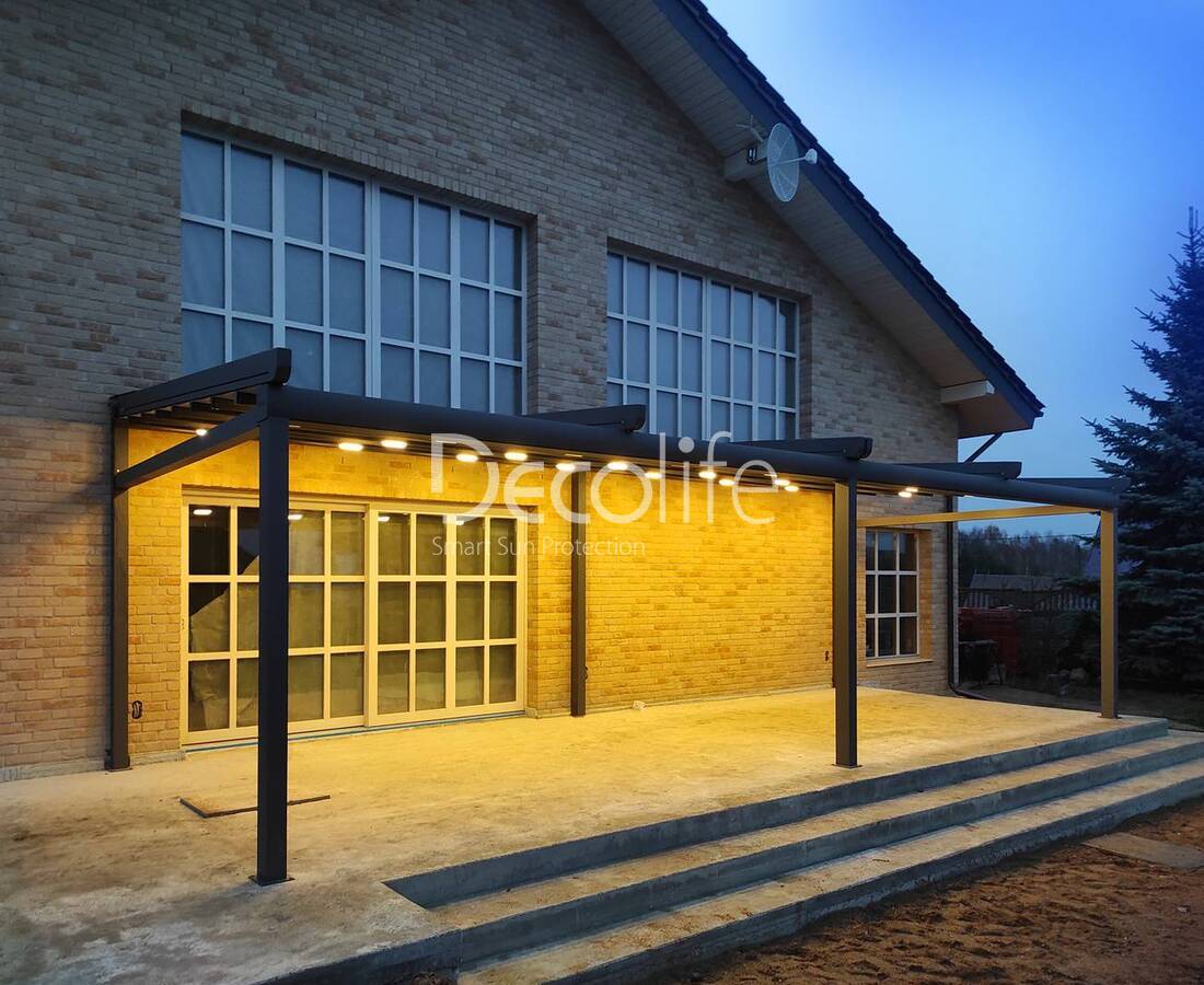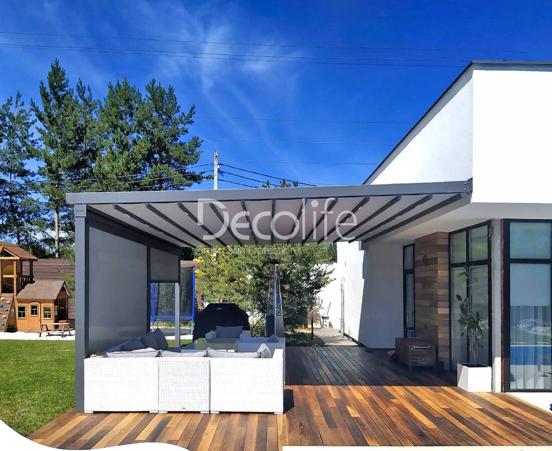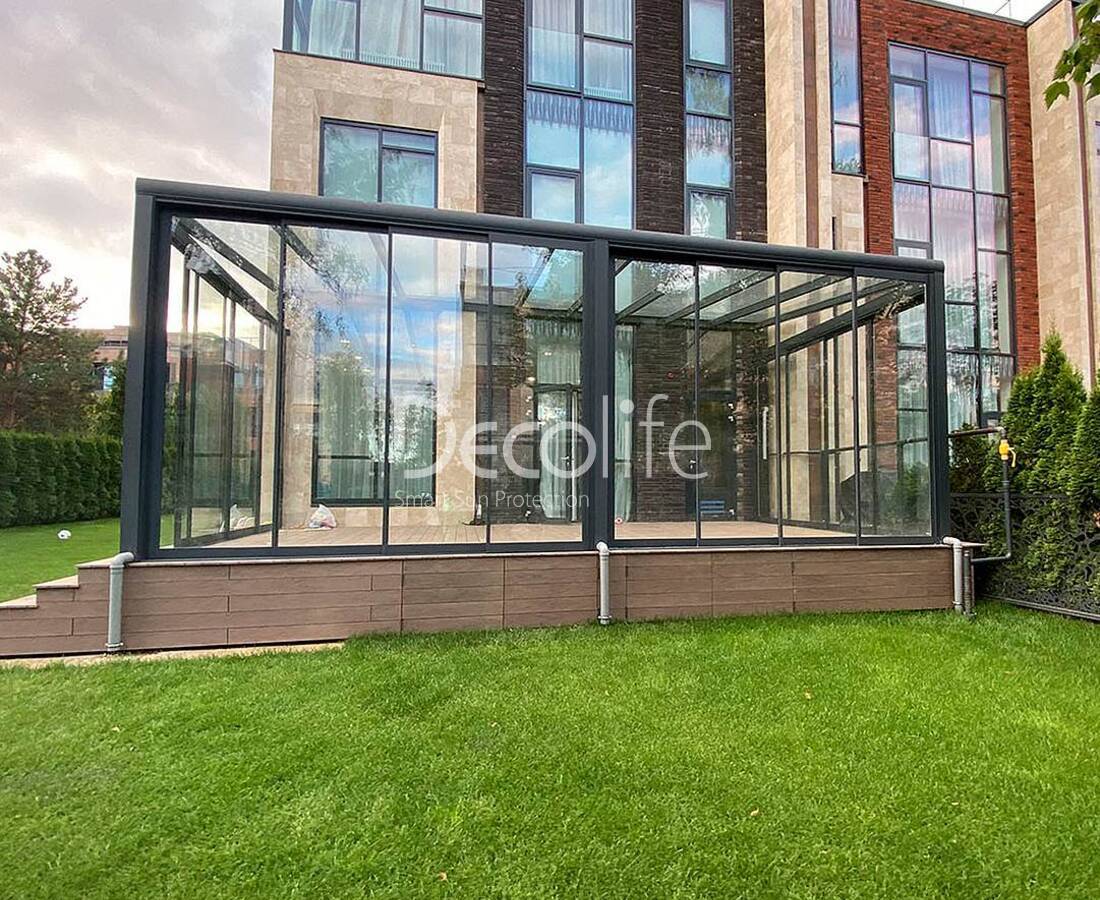 Пергола Decolife B600 PIR + Панорамное остекление S500, реализовано партнером "ООО Люкс Террас" - г. Москва