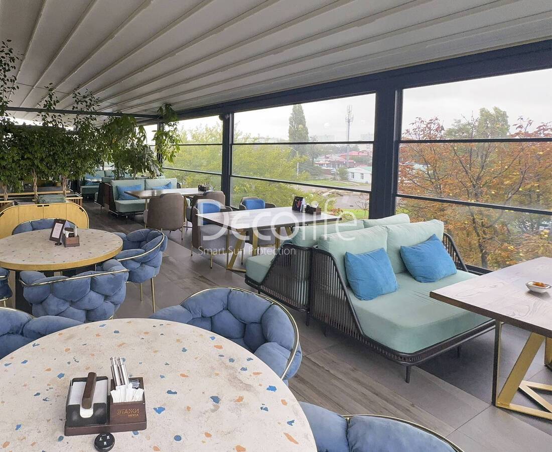Пергола Decolife B600 PIR + Раздвижное остекление S200 + Маркиза G200 - г. Москва, р-н "Remy Kitchen Bakery"