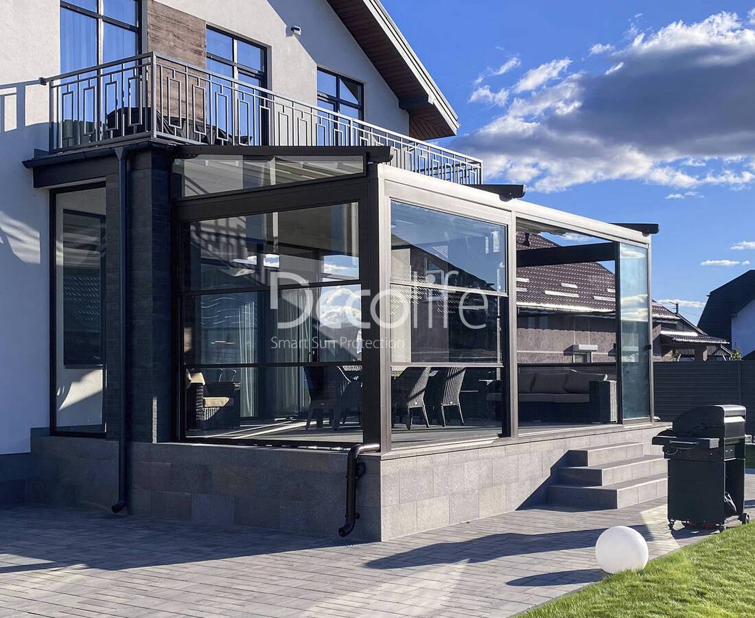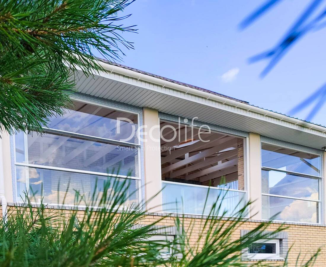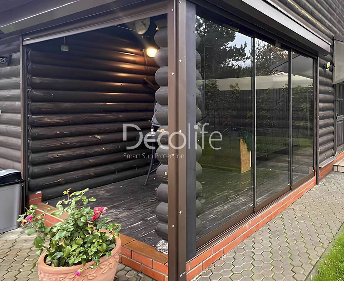 Конструкция включает до 10 панелей, подходит для пергол Decolife, отлично сочетается с другими типами солнцезащиты. Остекление эргономично, не требует трудоемкого ухода и сложного обслуживания. По степени функциональности и практичности такие конструкции превосходят большинство аналогов.
